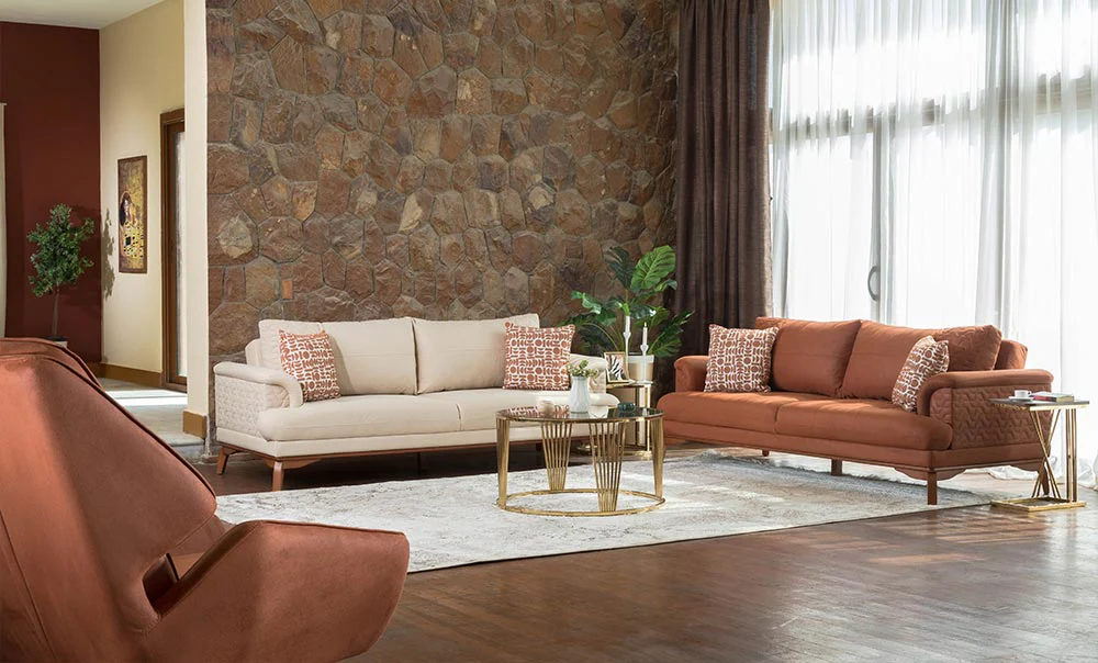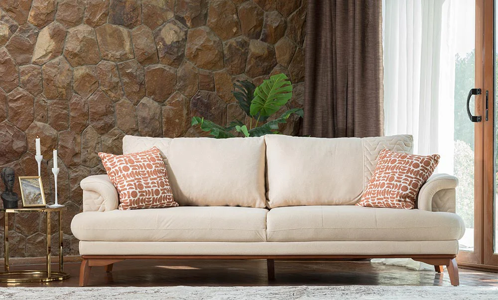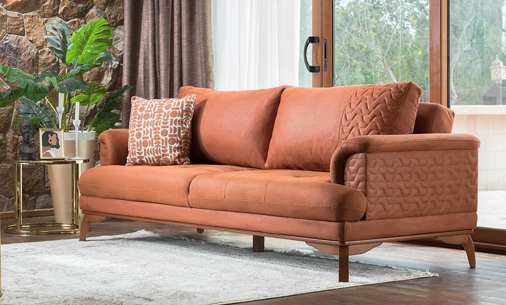 انترية من الخشب الزان الاحمر ، القماش قطيفة ، مكون من 2 كنبه