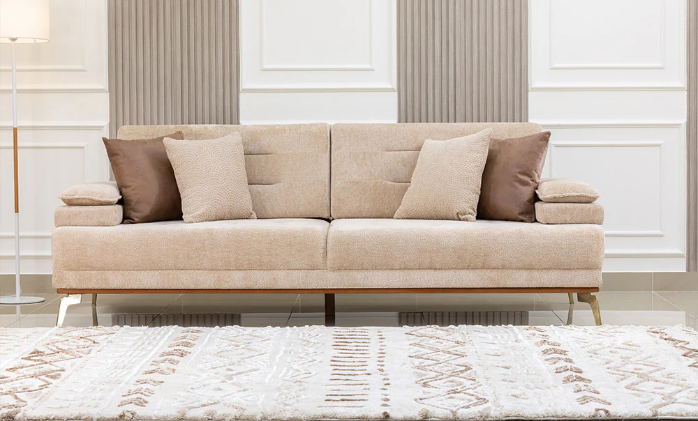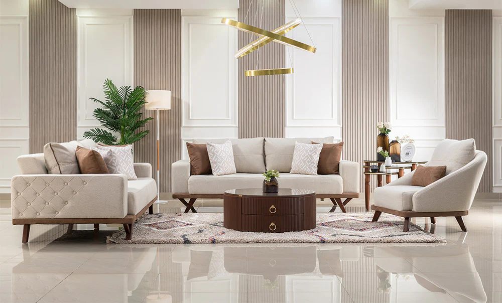 انترية من الخشب الزان الاحمر ، القماش قطيفة ، مكون من 2 كنبه و فوتيه