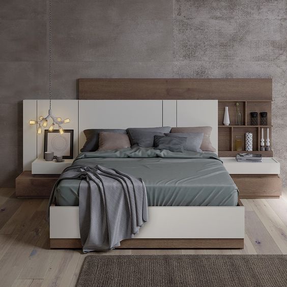 سرير خشب ام دي اف أسباني بطبقة خارجية من الميلامين باللون البني والابيض