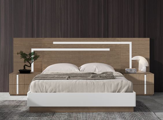 سرير خشب ام دي اف أسباني بطبقة خارجية من الميلامين باللون الخشبي والابيض