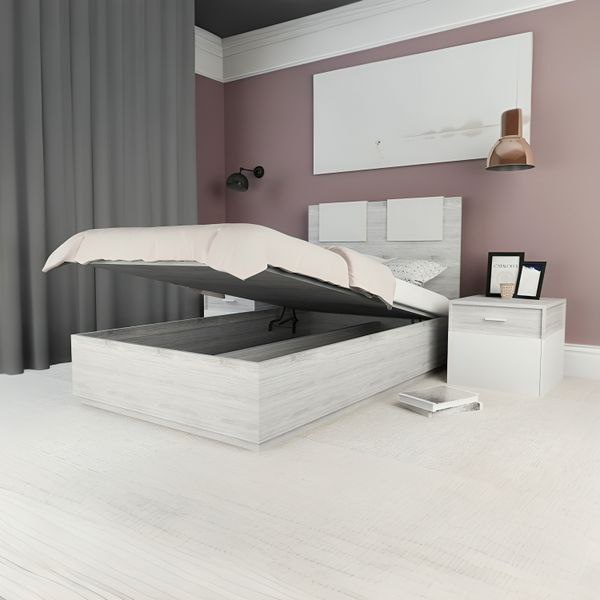 سرير بميكانزم من خشب ام دي اف أسباني بطبقة خارجية من الميلامين باللون الرمادى والابيض