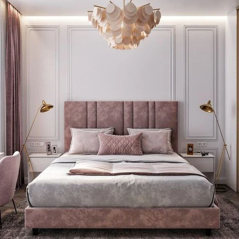سرير خشب ام دي اف أسباني بطبقة خارجية من الميلامين متنجد باللون الكشمير