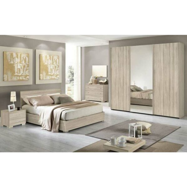 غرفة نوم ماستر خشب ام دي اف أسباني بطبقة خارجية من الميلامين باللون الخشبي مكونة من سرير و دولاب و2 كمود و تسريحة