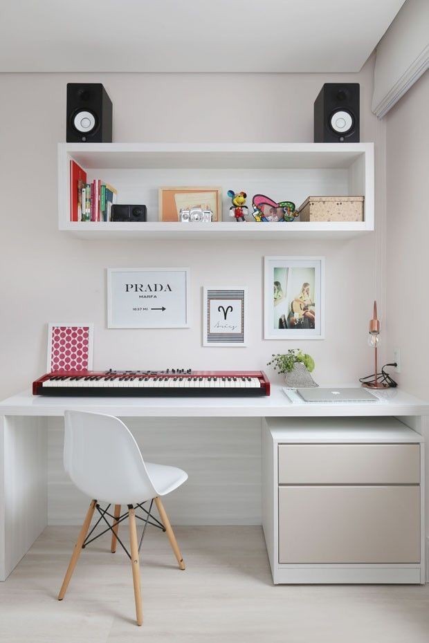 مكتب خشب ام دي اف أسباني بطبقة خارجية من الميلامين باللون الابيض مع وحدة ادراج جانبية متحركة باللون البيج مع مكتبة معلقة