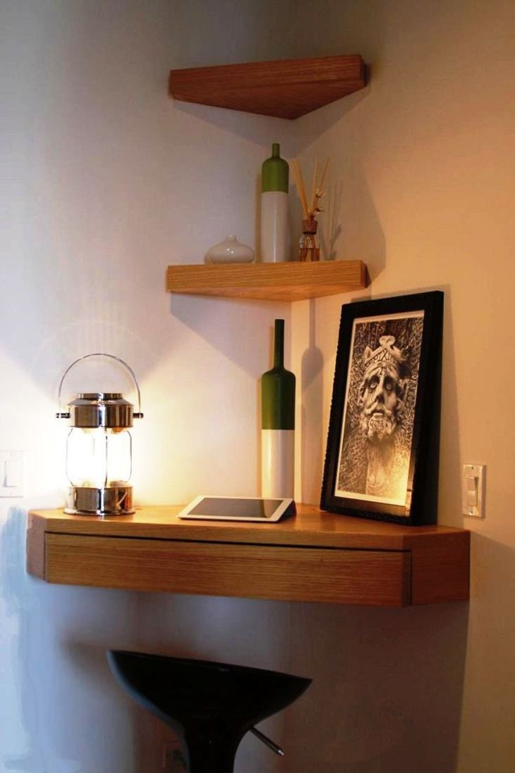 مكتب زاوية خشب ام دي اف أسباني بطبقة خارجية من الميلامين باللون البني مع رف معلق