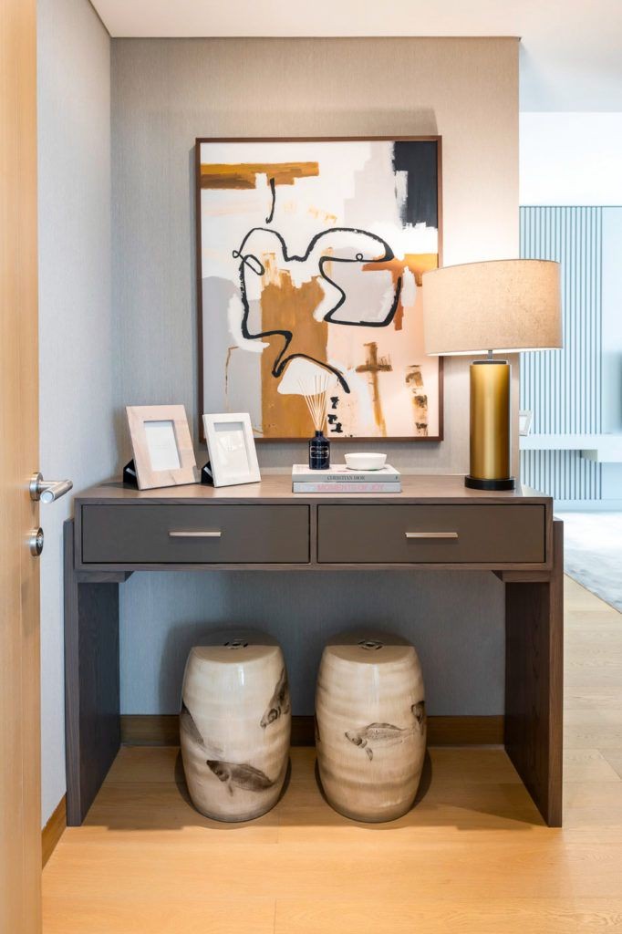 مكتب خشب ام دي اف أسباني بطبقة خارجية من الميلامين باللون الرمادي مع 2 درج افقي