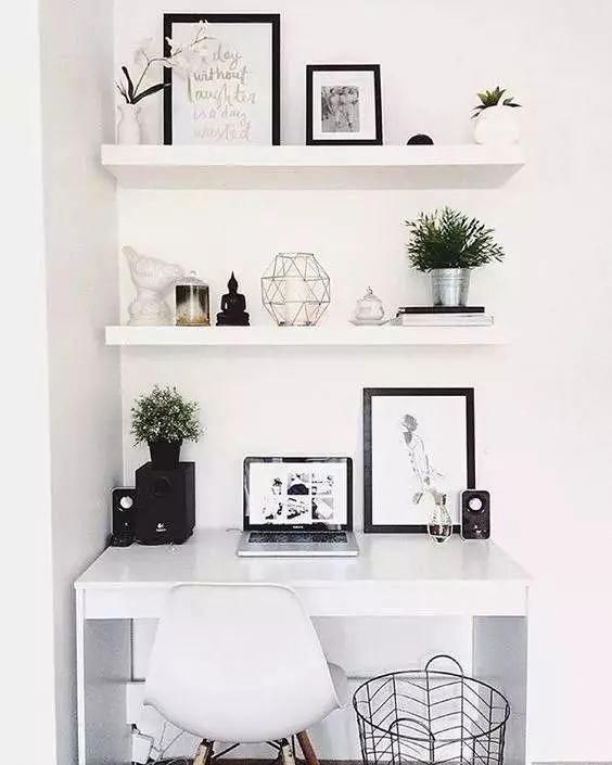 مكتب خشب ام دي اف أسباني بطبقة خارجية من الميلامين باللون الابيض مع ٢رف معلق