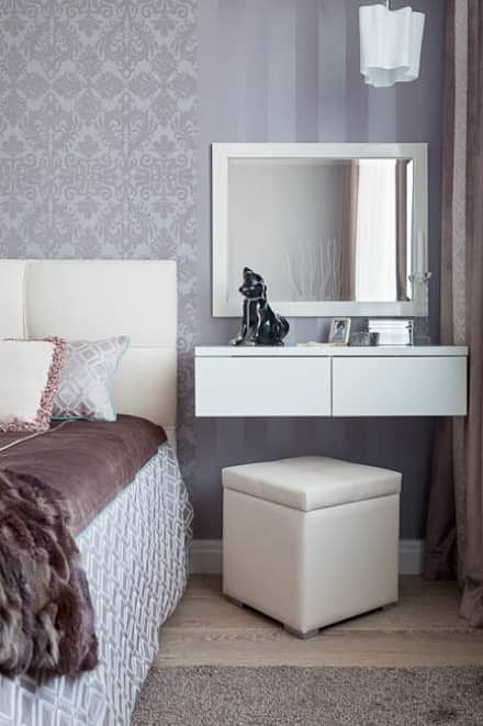 تسريحة معلقة من خشب ام دي اف أسباني بطبقة خارجية من الميلامين باللون الأبيض مع بف ومراية