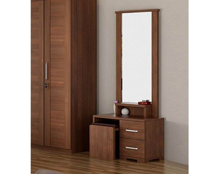 تسريحة من خشب ام دي اف أسباني بطبقة خارجية من الميلامين باللون البني مكونة من مراية ودرجين وبف