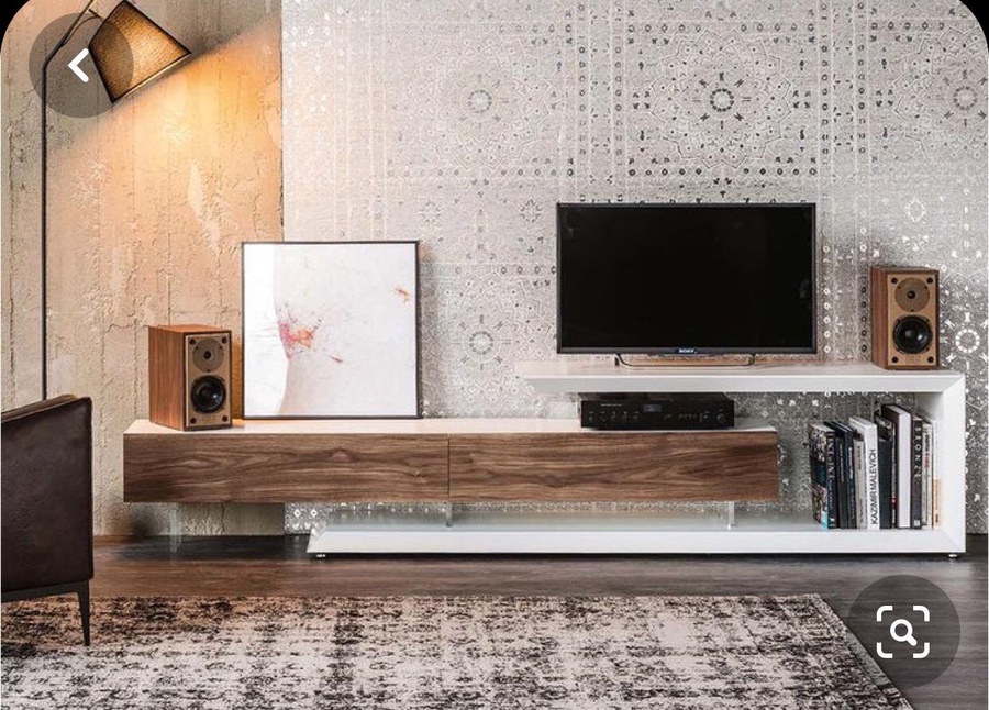 وحدة تلفزيون من الخشب الام دي اف أسباني بطبقة خارجية من الميلامين باللون الابيض والبني