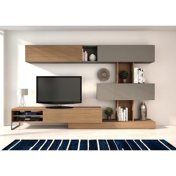 وحدة تليفزيون من الخشب الام دي اف أسباني بطبقة خارجية من الميلامين بها 1 درج مع 3 ضلفة قلاب