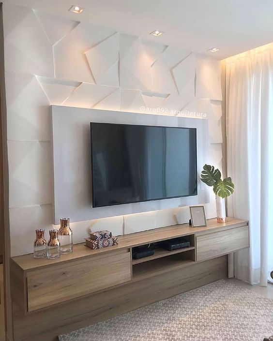 وحدة تليفزيون معلقة من الخشب الام دي اف أسباني بطبقة خارجية من الميلامين بها 2 درج مع جدارية خشبية للتليفزيون