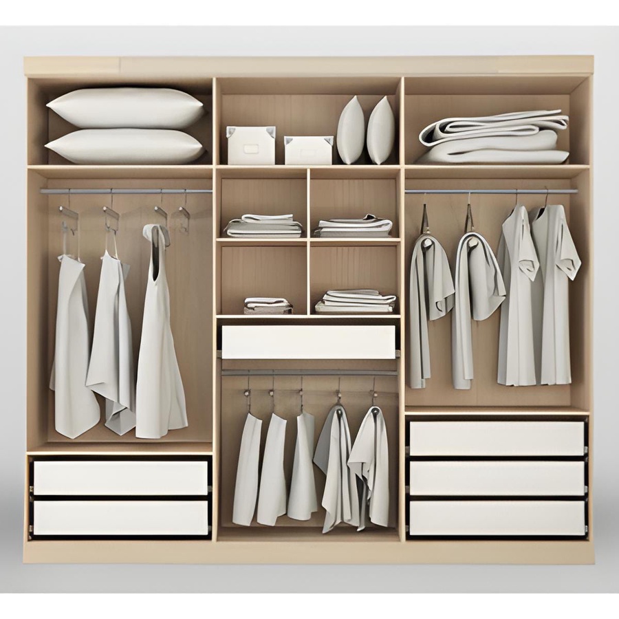دريسنج من خشب الام دي اف أسباني بطبقة خارجية من الميلامين يحتوي ع أماكن تعليق الملابس و مجموعة من الارفف الداخلية و 6 درج داخلي