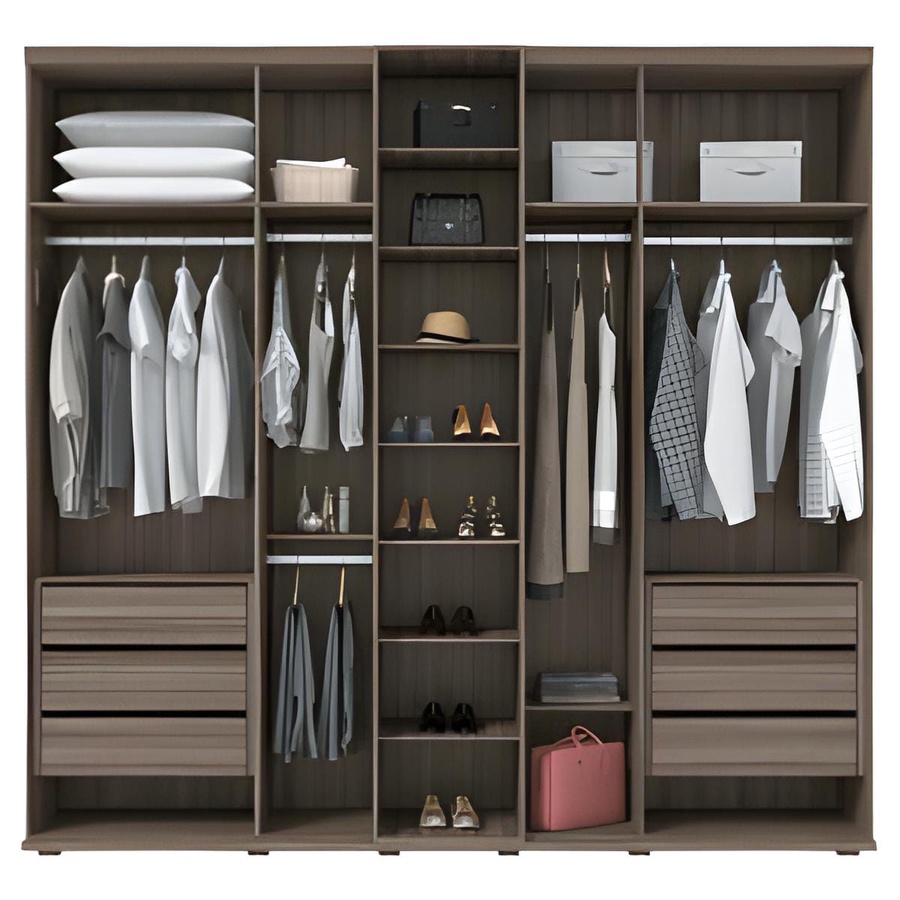دريسنج من خشب الام دي اف أسباني بطبقة خارجية من الميلامين يحتوي ع أماكن تعليق الملابس و مجموعة من الارفف الداخلية و 6 درج داخلي