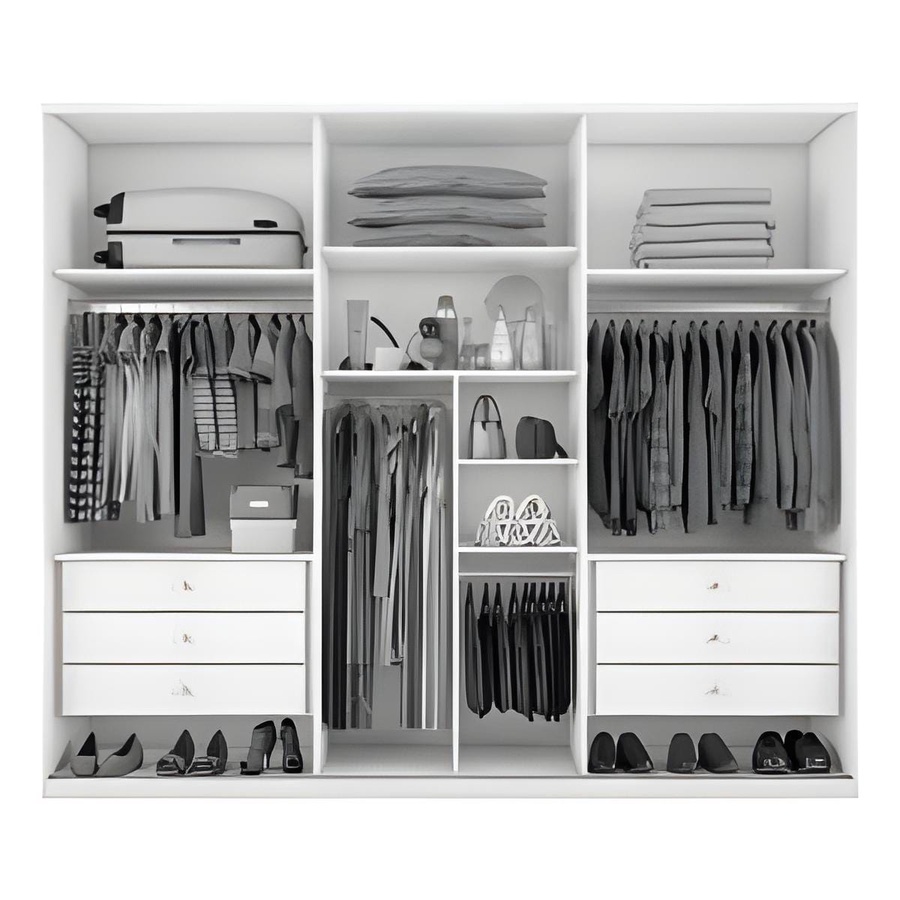 دريسنج من خشب الام دي اف أسباني بطبقة خارجية من الميلامين يحتوي ع أماكن تعليق الملابس و مجموعة من الارفف الداخلية و 6 درج داخلي