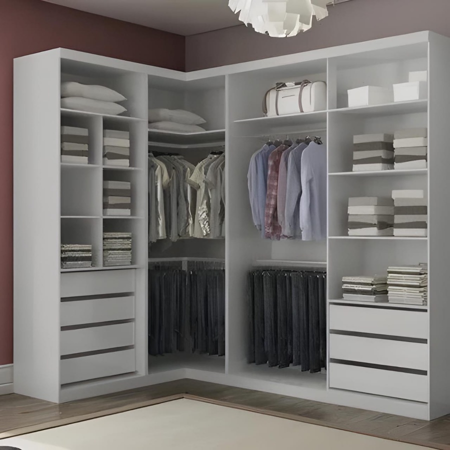 دريسنج من خشب الام دي اف أسباني بطبقة خارجية من الميلامين باللون الابيض يحتوي ع أماكن تعليق الملابس و مجموعة من الارفف ومجموعة من الادراج