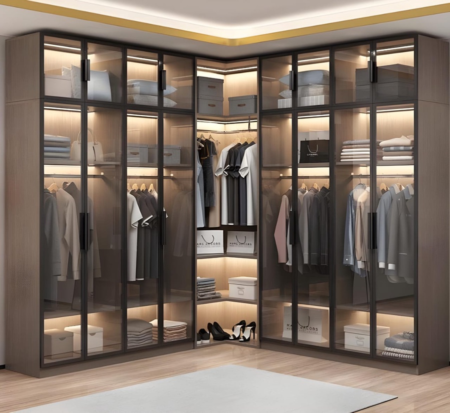 دريسنج من خشب الام دي اف أسباني بطبقة خارجية من الميلامين باللون الخشبي يحتوي ع أماكن تعليق الملابس و مجموعة من الارفف ومجموعة من الادراج